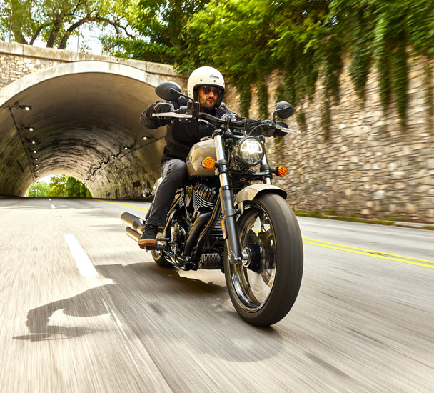 As cruisers da Indian Motorcycle são veículos potentes desenhados mecanicamente com um estilo intemporal. A regra é a aparência elegante e dinâmica sem quaisquer acrescentos, os alforges de pele e o para-brisas são a exceção.